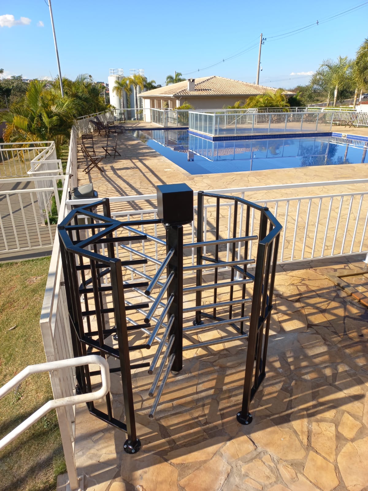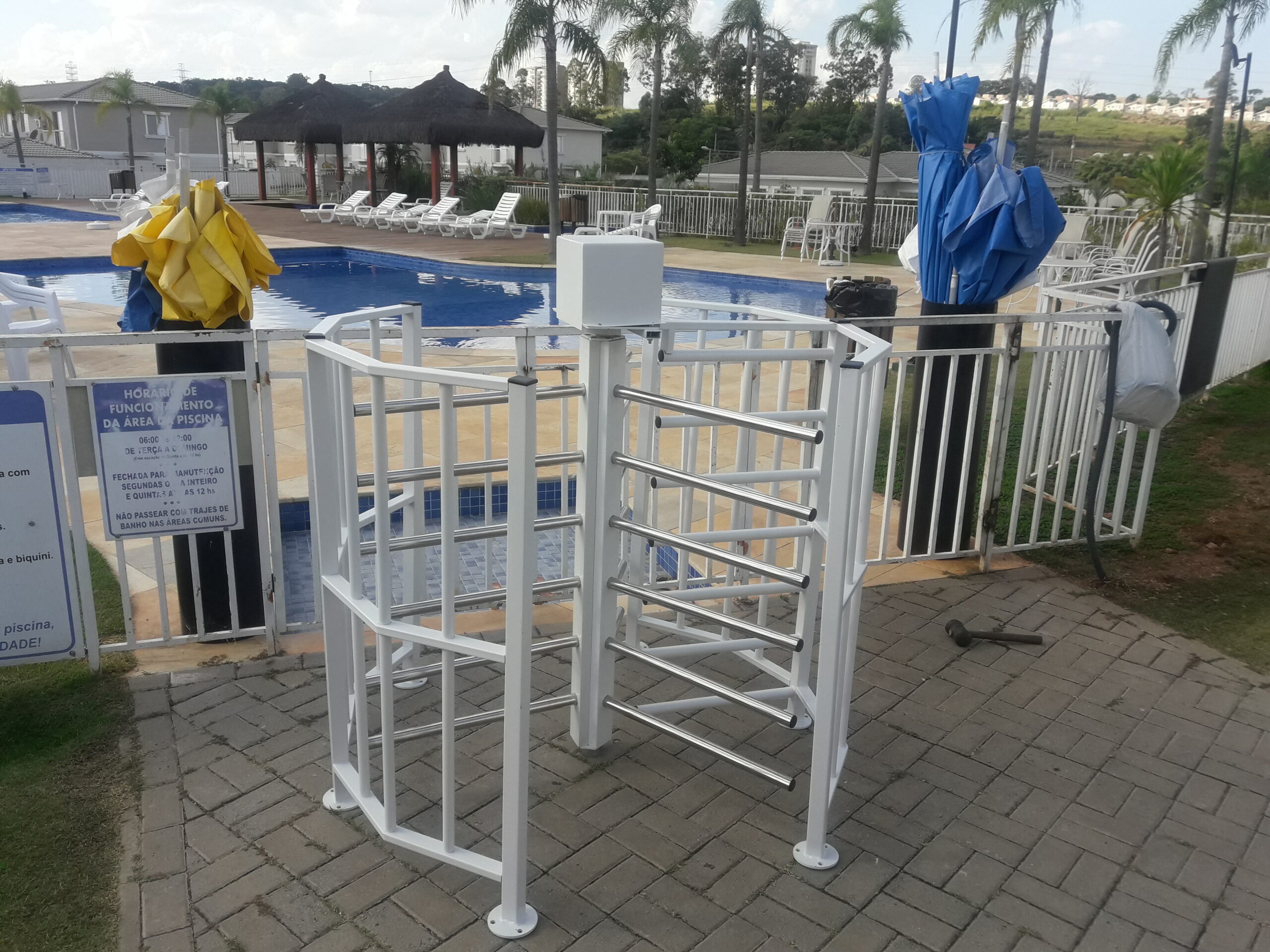 Catraca mini torniquete em aço inox, ideal para controle de acesso em piscinas e áreas comuns, garantindo segurança, durabilidade e excelente acabamento.