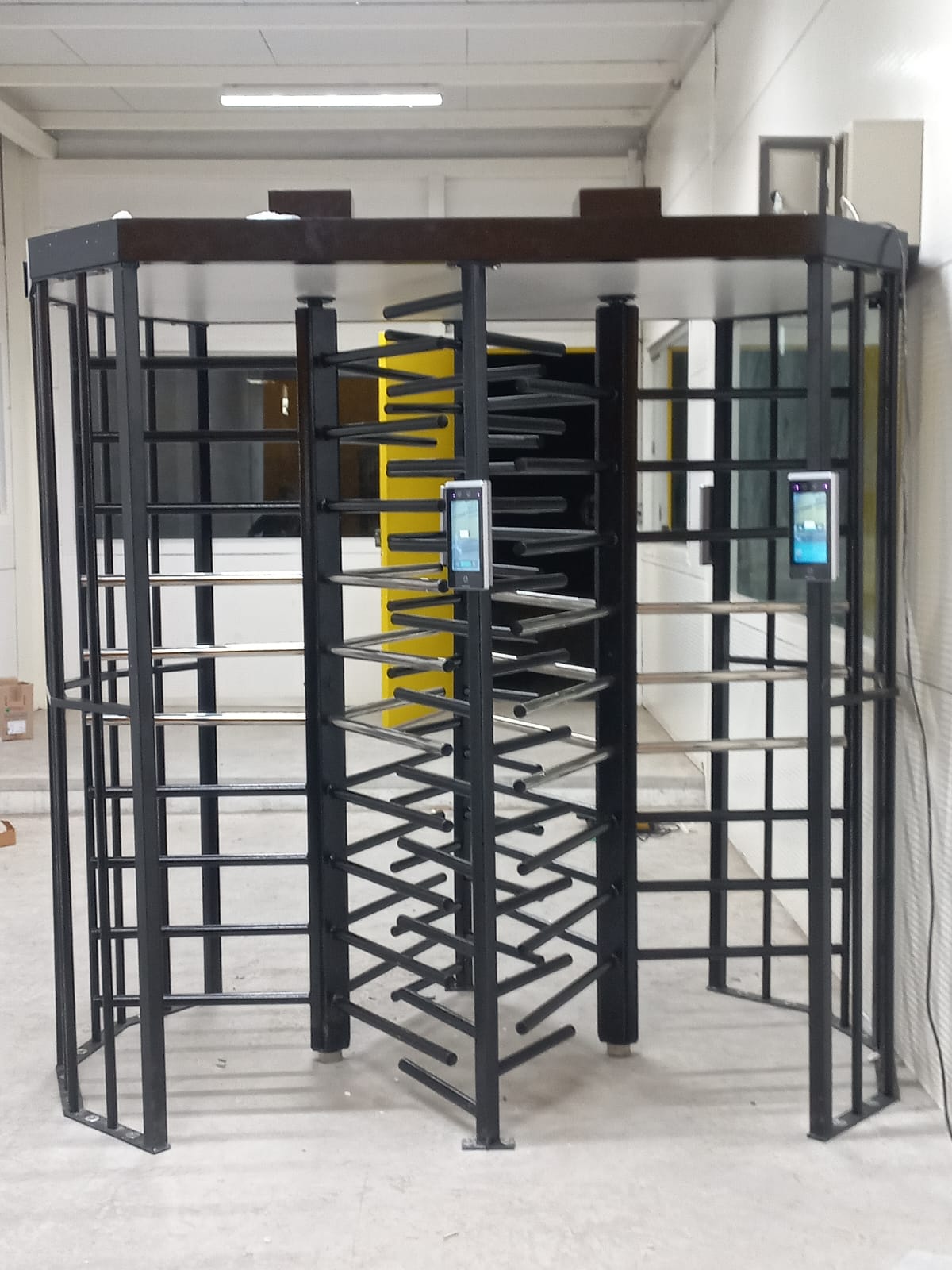 Torniquete duplo desenvolvido para locais com grande circulação, oferecendo controle eficiente de entradas, durabilidade e operação segura.